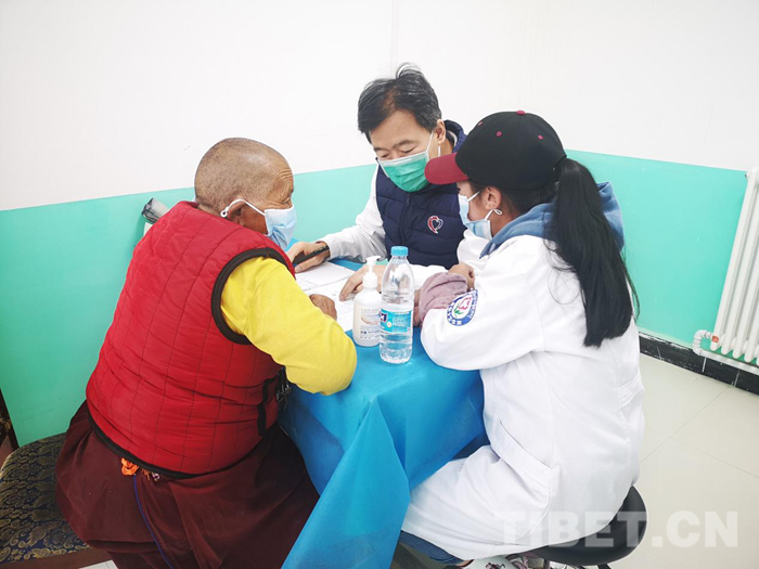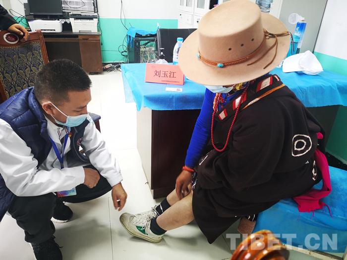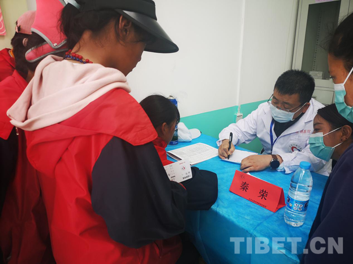 達(dá)日縣建設(shè)鄉(xiāng)義診小分隊(duì)到達(dá)鄉(xiāng)衛(wèi)生院后,當(dāng)?shù)厝罕娨雅藕瞄L(zhǎng)隊(duì)等待就診。為了讓醫(yī)患之間交流順暢,建設(shè)鄉(xiāng)衛(wèi)生院給每位義診醫(yī)生配備了一名藏語(yǔ)翻譯。在醫(yī)生與當(dāng)?shù)蒯t(yī)務(wù)工作者的通力配合下,實(shí)現(xiàn)了問診清晰、檢查和開藥的準(zhǔn)確傳遞。義診人員克服高原反應(yīng)癥狀,始終保持熱情、耐心、友善的心態(tài)解答病人的咨詢并開出醫(yī)囑,前來就診的群眾拿到醫(yī)囑后領(lǐng)取了免費(fèi)藥品。