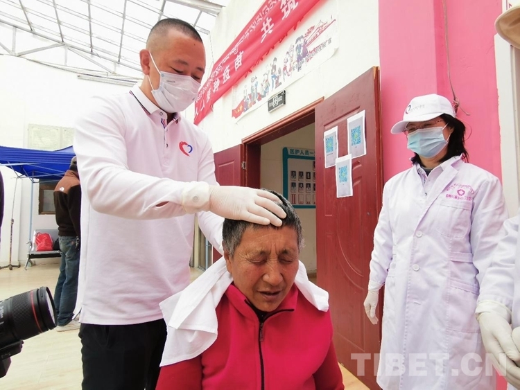 義診最后一天的下午,韓菲來到久治縣醫(yī)院。有個50歲左右的男性患者,把治療的時間讓給了兩個女性患者。眼看下班時間臨近,男患者有點著急,他找到韓菲說,自己從80公里外趕到縣醫(yī)院,就是想做針灸和按摩,如果今天沒有治療時間,他就回家了,不想給醫(yī)生添麻煩。