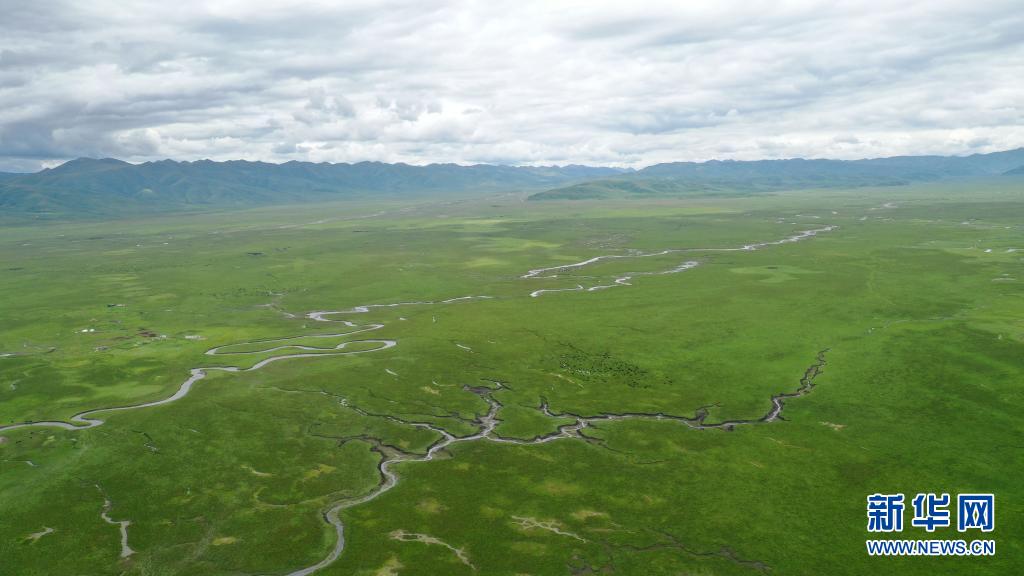 這是7月15日拍攝的瑪曲縣阿萬倉濕地(無人機照片)。新華社記者 文靜 攝