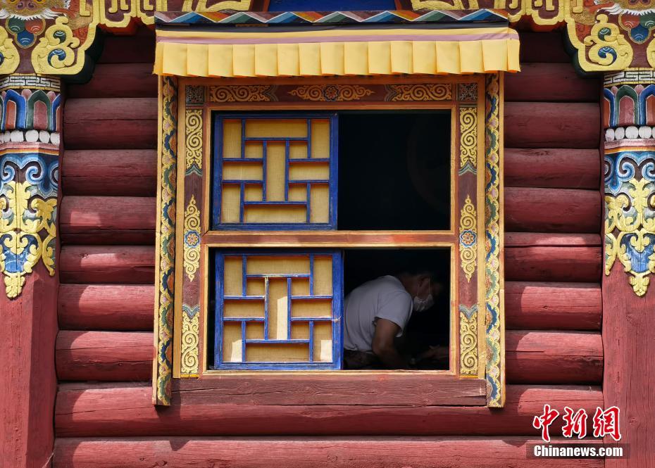 7月20日,四川德格,印經院印刷工人進行雕版印刷。中新社記者 劉忠俊 攝