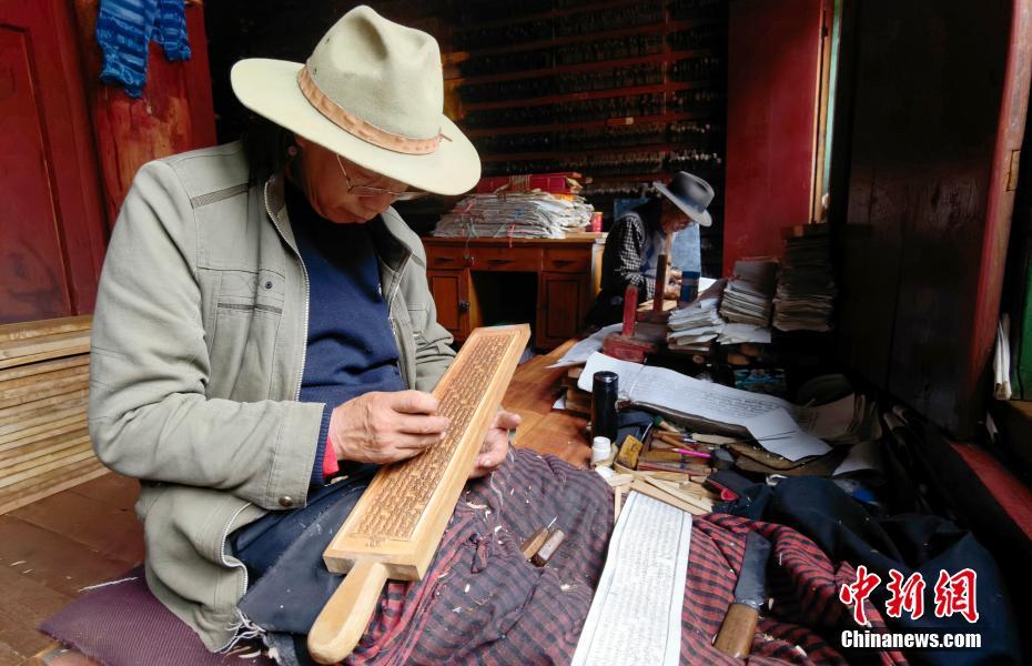 7月20日,四川德格,印經院藏族雕版印刷非遺傳承人校對木刻版。中新社記者 劉忠俊 攝