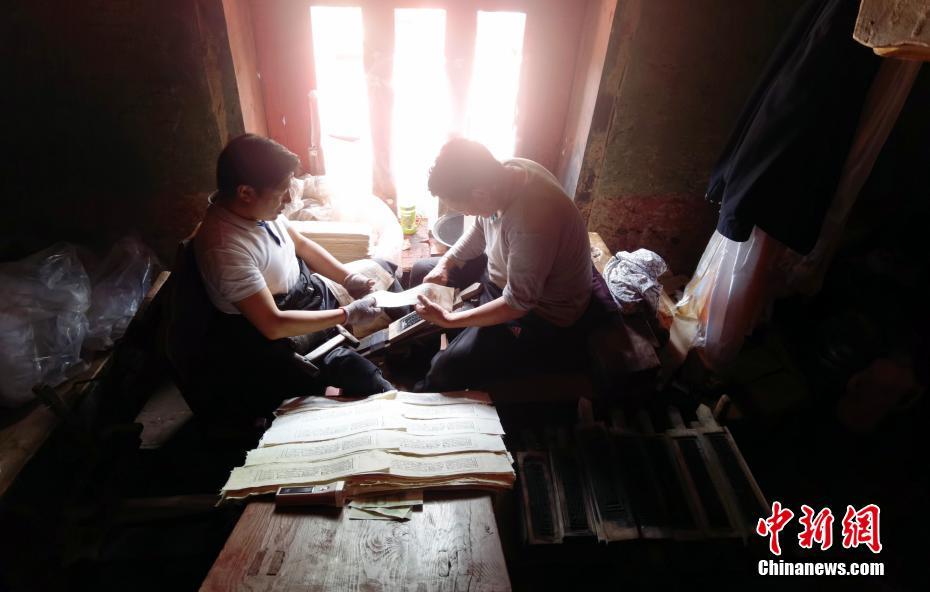7月20日,四川德格,印經院內印刷工人印經書。中新社記者 劉忠俊 攝