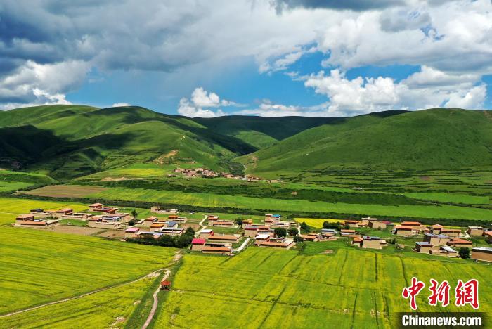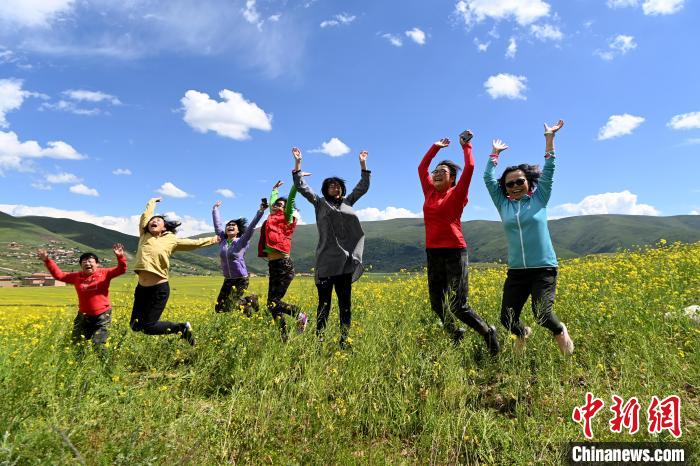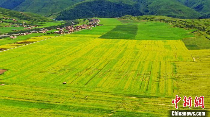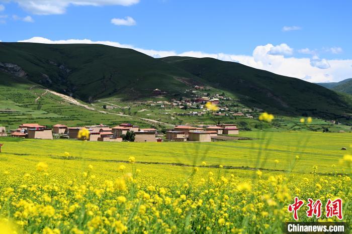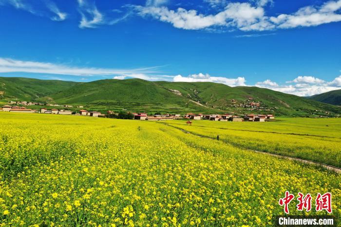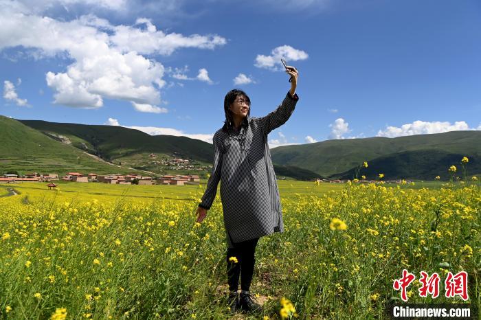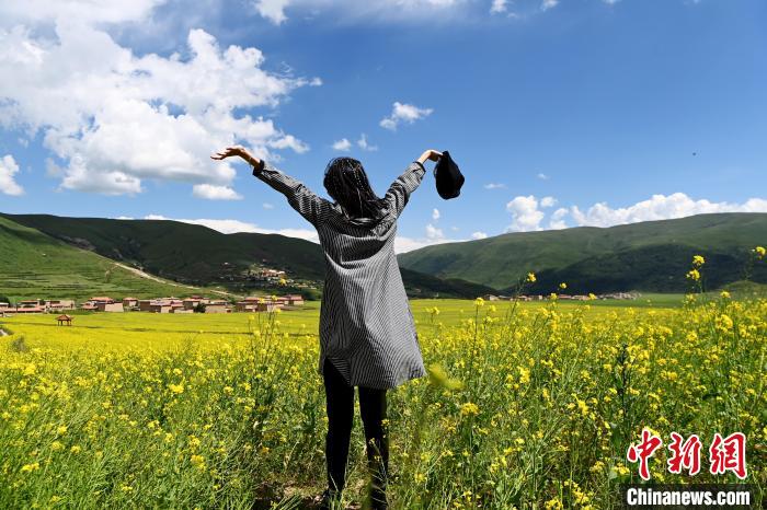 7月21日,四川省阿壩藏族羌族自治州阿壩縣麥昆鄉(xiāng)蠶不扎村高原油菜核心示范基地內(nèi),盛開的萬(wàn)畝高原油菜花海吸引游客前來(lái)觀光打卡。