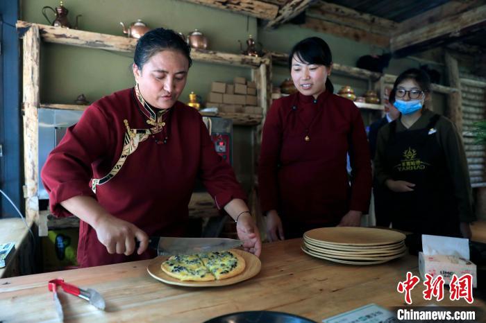 羊茸村村民為游客準備由本地食材制成的“藏式披薩”。王磊 攝