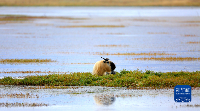甘肅尕海則岔國(guó)家級(jí)自然保護(hù)區(qū)管理局尕海保護(hù)站工作人員在尕海湖畔拍攝到一頭羚牛。新華社 張勇 攝
