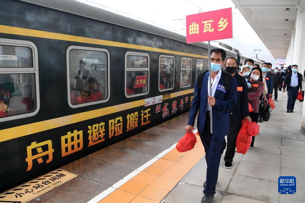 當(dāng)日,甘肅省甘南藏族自治州舟曲縣9個鄉(xiāng)鎮(zhèn)的200戶500余名居民乘坐中國鐵路蘭州局集團(tuán)有限公司開行的舟曲避險搬遷“感恩號”專列前往蘭州新區(qū)安家。據(jù)介紹,今年以來,甘肅省啟動舟曲縣地質(zhì)災(zāi)害避險搬遷工作,計劃年底前搬遷770戶2960人到蘭州新區(qū)安家,此次搬遷的200戶居民是首次借助鐵路專列運輸形式實施搬遷。