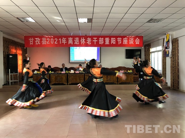 圖為甘孜縣2021年度離退休老干部重陽節(jié)座談會暨重陽文藝匯演現(xiàn)場