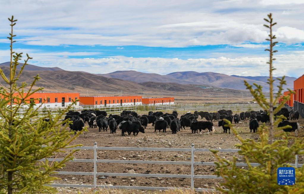 10月20日,在四川省甘孜藏族自治州理塘縣牦牛產業(yè)園區(qū),牦牛群在戶外活動場活動。新華社記者 王曦 攝
