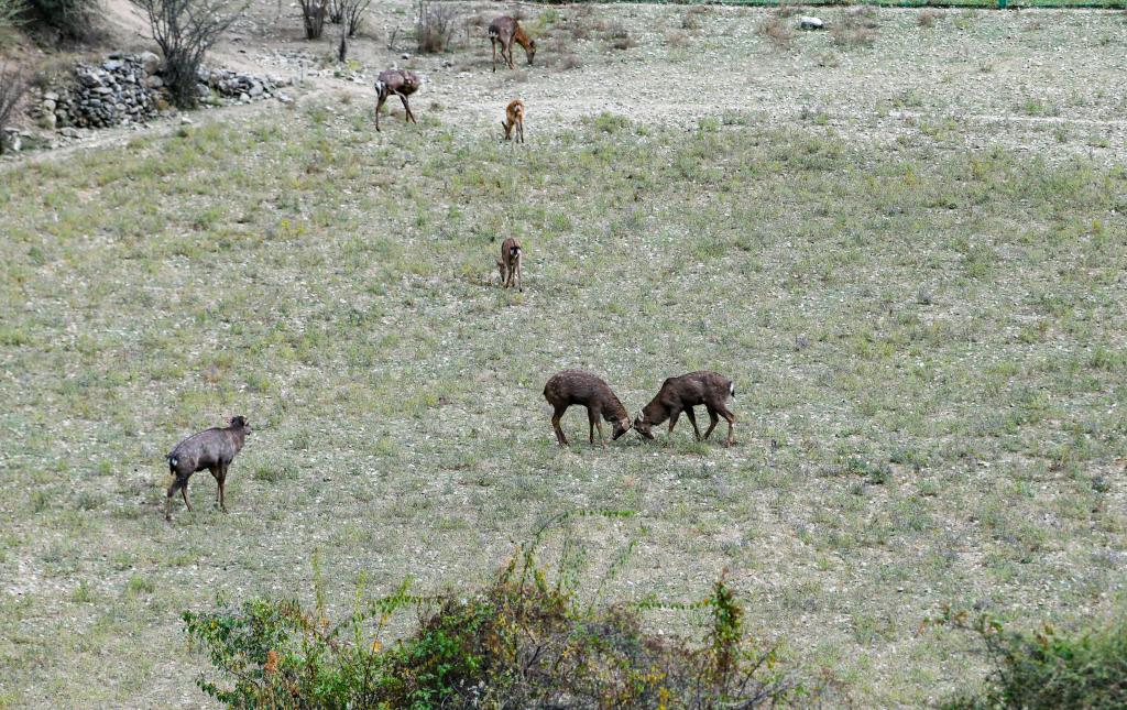 10月20日在仁乃農(nóng)旅融合示范園拍攝的當?shù)仞B(yǎng)殖的梅花鹿。新華社記者 王曦 攝