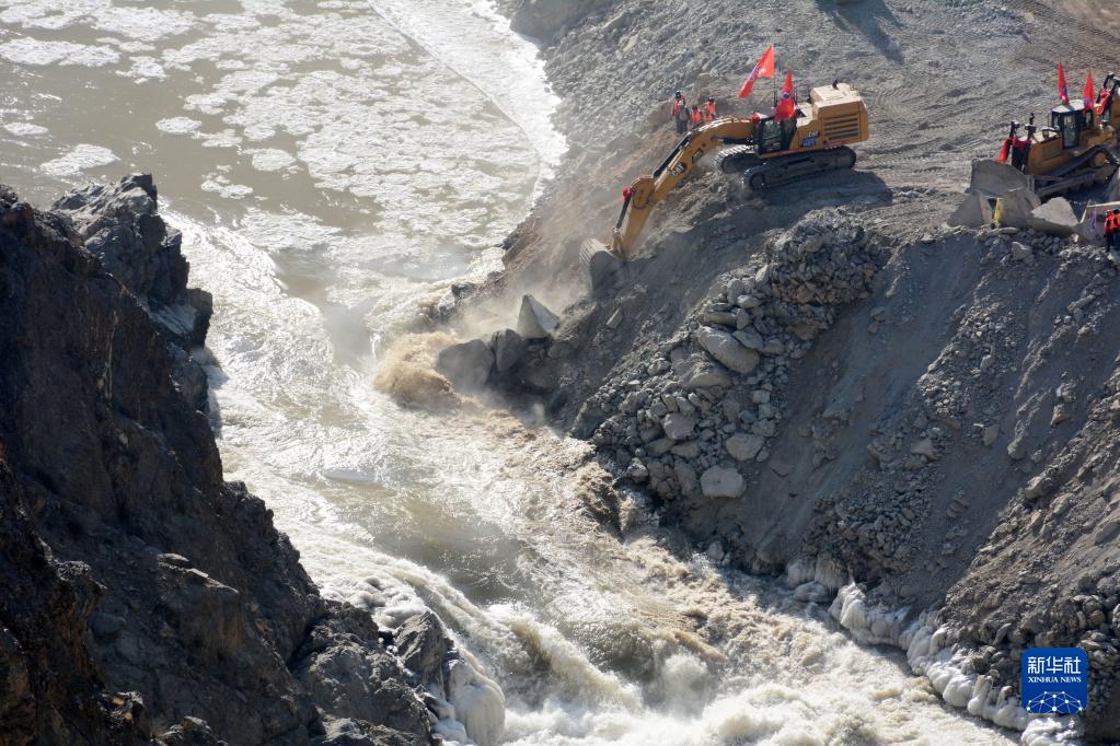 12月26日,在青海省海南藏族自治州興海縣,隨著一塊塊鋼筋混凝土四面體瀉入黃河,黃河羊曲水電站主河床截流工程啟動,標志著黃河羊曲水電站正式進入主體工程施工階段。新華社記者 柳澤興 攝