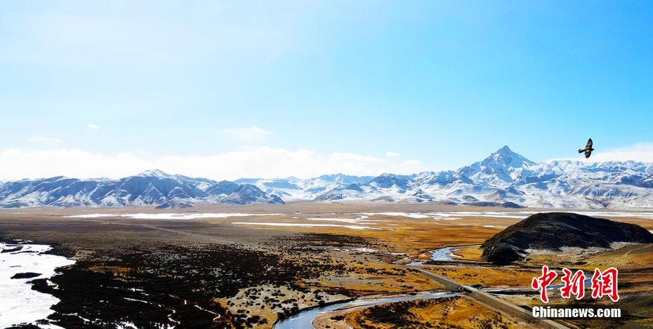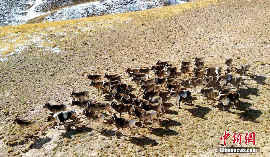 圖為航拍成群盤(pán)羊。贊慶 攝