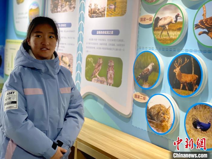 圖為多杰吉在祁連山國家公園生態(tài)學校自然教室為參觀者進行講解。李江寧 攝