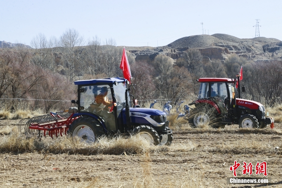 2月24日,藏族村民正在進行機械耕作。中新社記者 馬銘言 攝