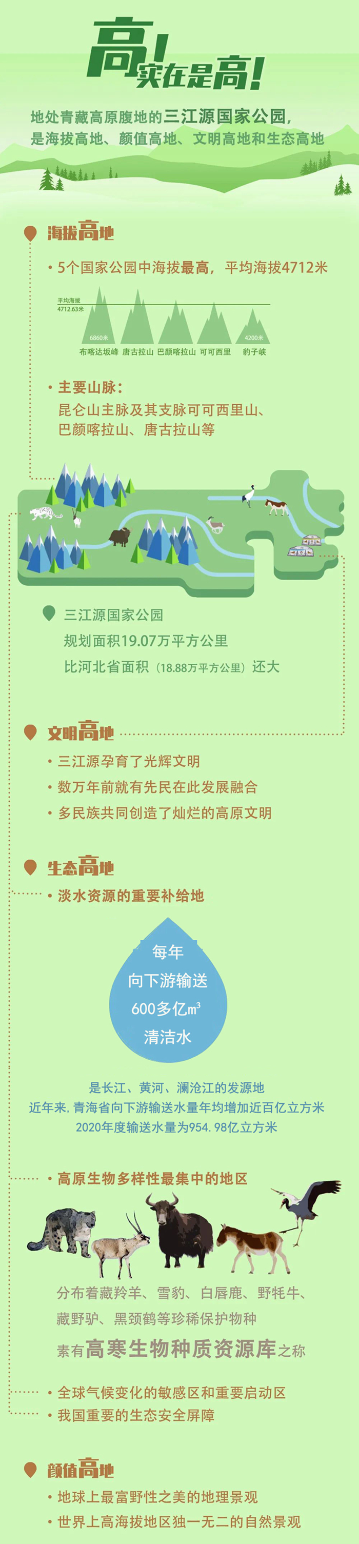 2021年6月,習近平總書記赴青海考察時強調(diào),保護好青海生態(tài)環(huán)境,是“國之大者”。要牢固樹立綠水青山就是金山銀山理念,切實保護好地球第三極生態(tài)。要把三江源保護作為青海生態(tài)文明建設(shè)的重中之重,承擔好維護生態(tài)安全、保護三江源、保護“中華水塔”的重大使命。要繼續(xù)推進國家公園建設(shè),理順管理體制,創(chuàng)新運行機制,加強監(jiān)督管理,強化政策支持,探索更多可復制可推廣經(jīng)驗。