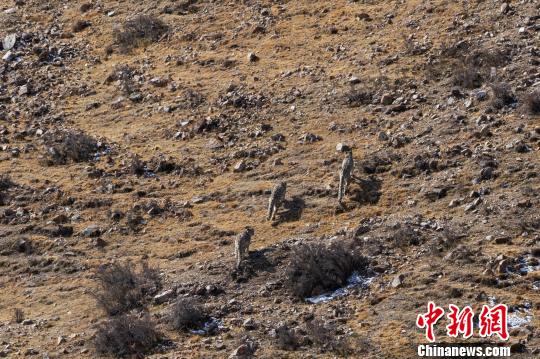 工作人員在祁連山腹地“邂逅”三只雪豹