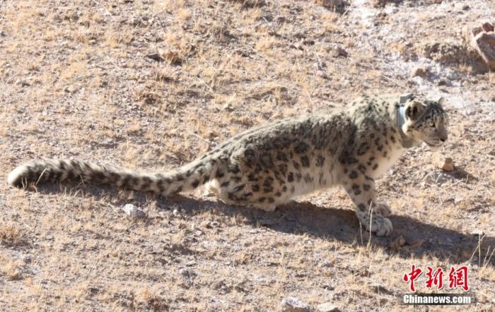 資料圖為佩戴衛(wèi)星追蹤項圈的雪豹被放歸。中新社發(fā) 祁連山國家公園青海省管理局供圖