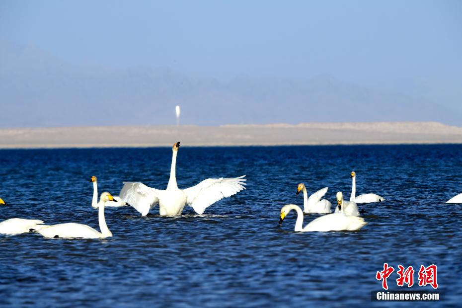 上百只天鵝在柴達木盆地可魯克湖翩翩起舞