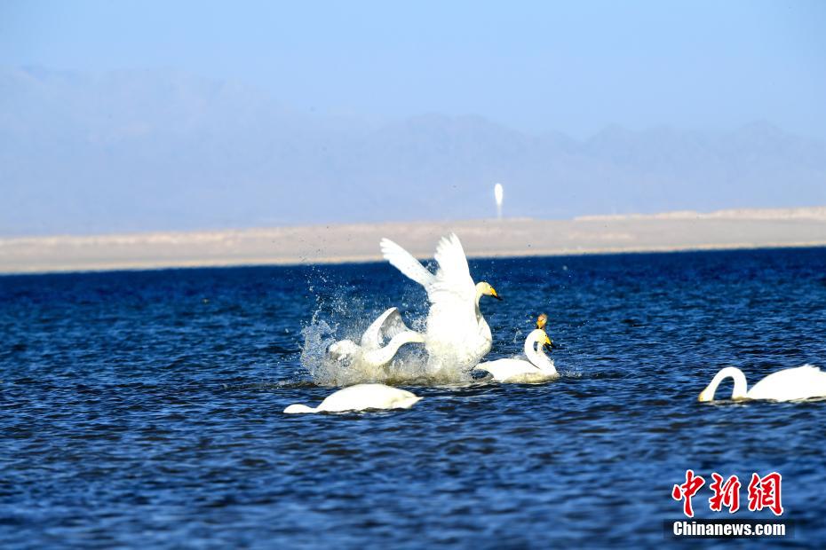 青海湖畔大天鵝集體“泡湯”畫面唯美