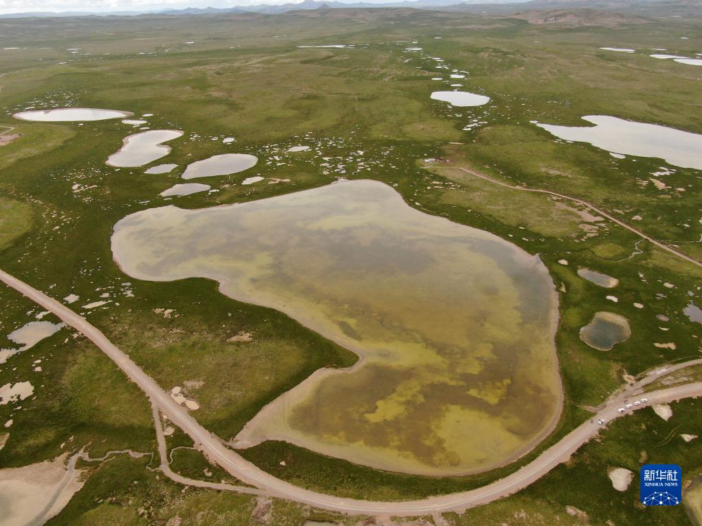 這是2021年7月23日拍攝的長江源地區(qū)的查旦濕地(無人機(jī)照片)。新華社記者 張龍 攝