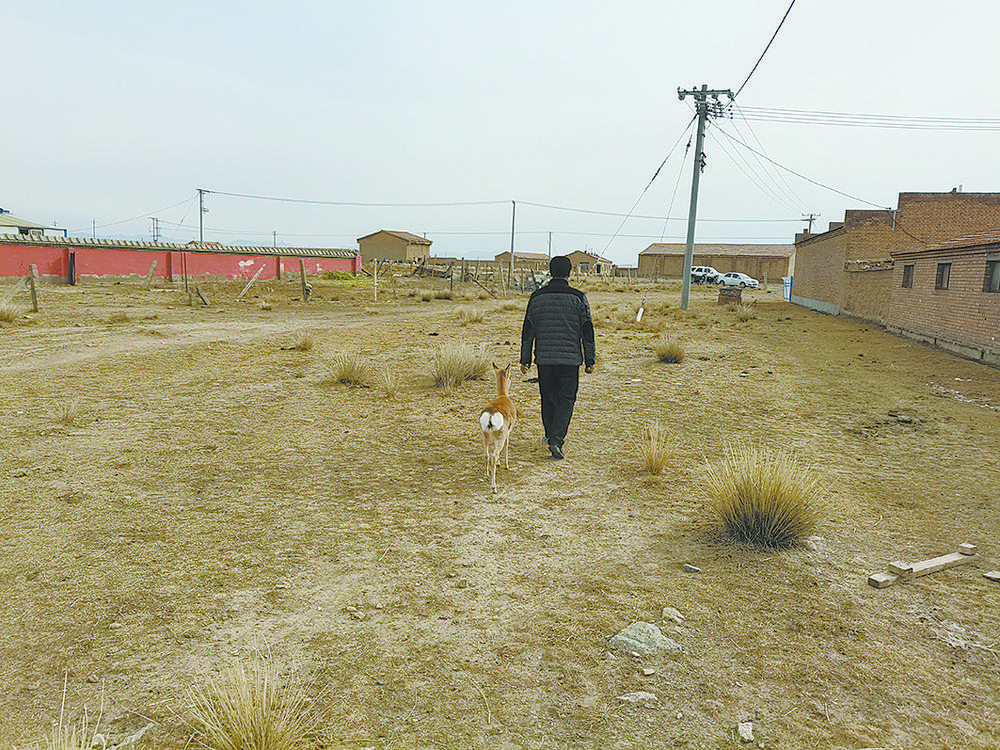 3月24日,記者第3次來到青海省海北藏族自治州剛察縣哈爾蓋鎮(zhèn)環(huán)倉秀麻村,拜訪一位叫周增本的牧人。找尋他的緣由,是因?yàn)樗麄兗姨砹艘晃豢蓯鄱痔厥獾摹凹彝コ蓡T”——一只小普氏原羚。
