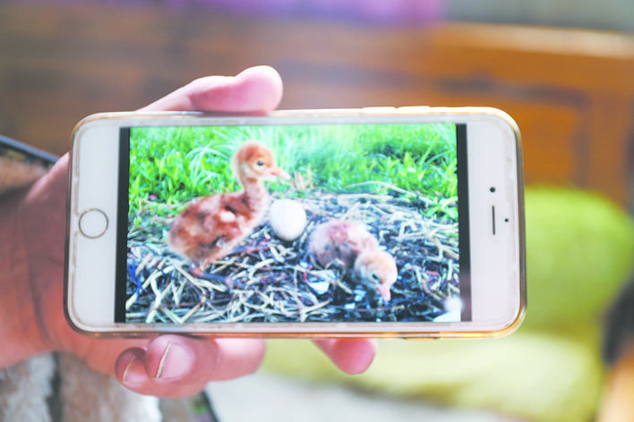 “我們與這對黑頸鶴相識五年之久了,每年三月,它們都會從云南遷回這里?;貋肀囟ń?jīng)過監(jiān)測站門前,我們就像親人一樣?!比缈颇贸鍪謾C(jī)翻看在巡護(hù)期間拍到的黑頸鶴影像,講起了他們和黑頸鶴夫婦的故事。