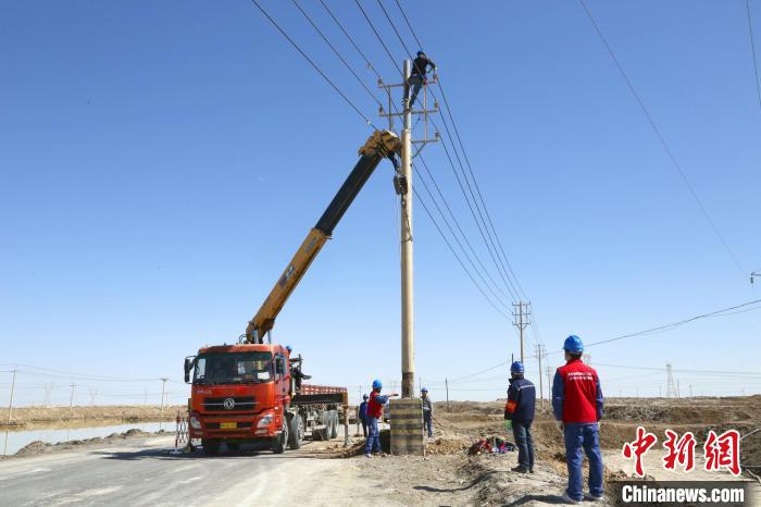 圖為青海海西供電公司員工在10千伏區(qū)七路15號桿更換桿塔組件?!W(wǎng)海西供電公司供圖
