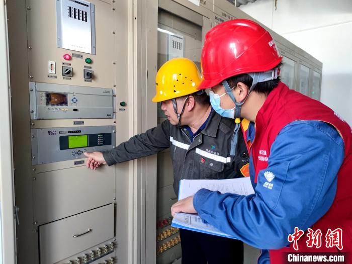 圖為國網(wǎng)青海電力三江源(海西營銷)共產(chǎn)黨員服務(wù)隊隊員在鹽湖化工鉀肥公司生產(chǎn)車間檢查設(shè)備?!W(wǎng)海西供電公司供圖