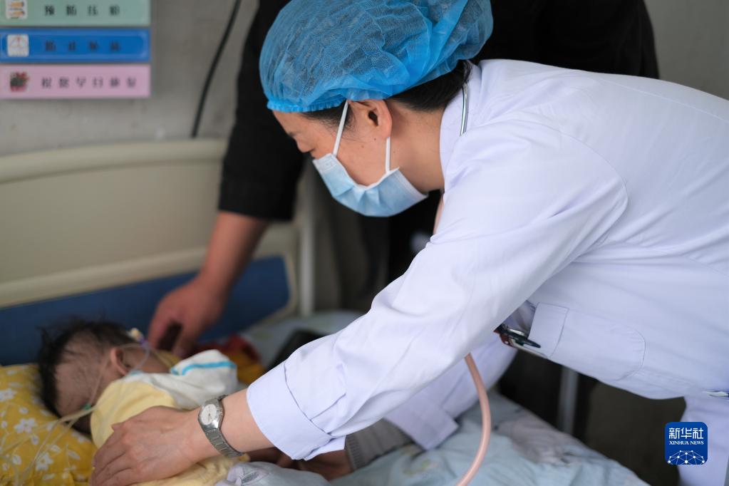 4月25日,青海省婦女兒童醫(yī)院醫(yī)生、青南支醫(yī)隊員孫敬在青海省玉樹藏族自治州人民醫(yī)院給患者檢查身體。新華社記者 韓方方 攝