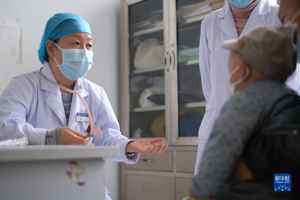 4月25日,青海省婦女兒童醫(yī)院醫(yī)生、青南支醫(yī)隊員孫敬(左一)在青海省玉樹藏族自治州人民醫(yī)院兒科門診坐診。新華社記者 韓方方 攝