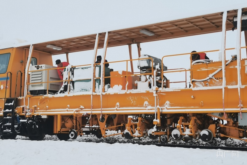昆侖山上,氣溫驟降,多處施工現(xiàn)場被大雪覆蓋,一片白雪皚皚。為確保施工順利進行,近日,西寧工務機械段維修三車間的職工們開啟了對青藏鐵路格拉線望昆——昆侖山區(qū)間大機搗固施工作業(yè)。西寧工務機械段維修三車間主任王海峰在施工作業(yè)前,帶領車間職工清理積雪,同時對低溫狀態(tài)易發(fā)生故障的作業(yè)裝置進行針對性保養(yǎng)。“注意腳下積雪濕滑,扶穩(wěn)抓牢,保證自身人身安全?!避囬g副主任張小波提醒說。