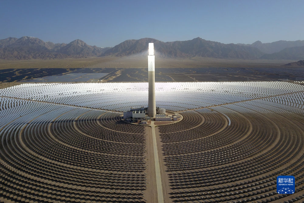 這是6月8日在海西蒙古族藏族自治州德令哈市光伏(光熱)產(chǎn)業(yè)園拍攝的青海中控德令哈50兆瓦光熱電站(無(wú)人機(jī)照片)。新華社記者 范培珅 攝