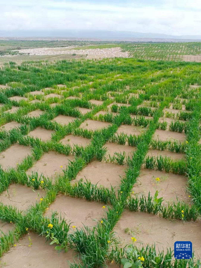 “2018年以來(lái),我們積極開(kāi)展治沙新材料試驗(yàn)研究,利用小麥、青稞、燕麥、披堿草等生物材料開(kāi)展活沙障設(shè)置試驗(yàn)?,F(xiàn)在四種生物沙障當(dāng)年成活率可達(dá)到95%,起到良好的固沙作用?!壁w雪彬說(shuō)。