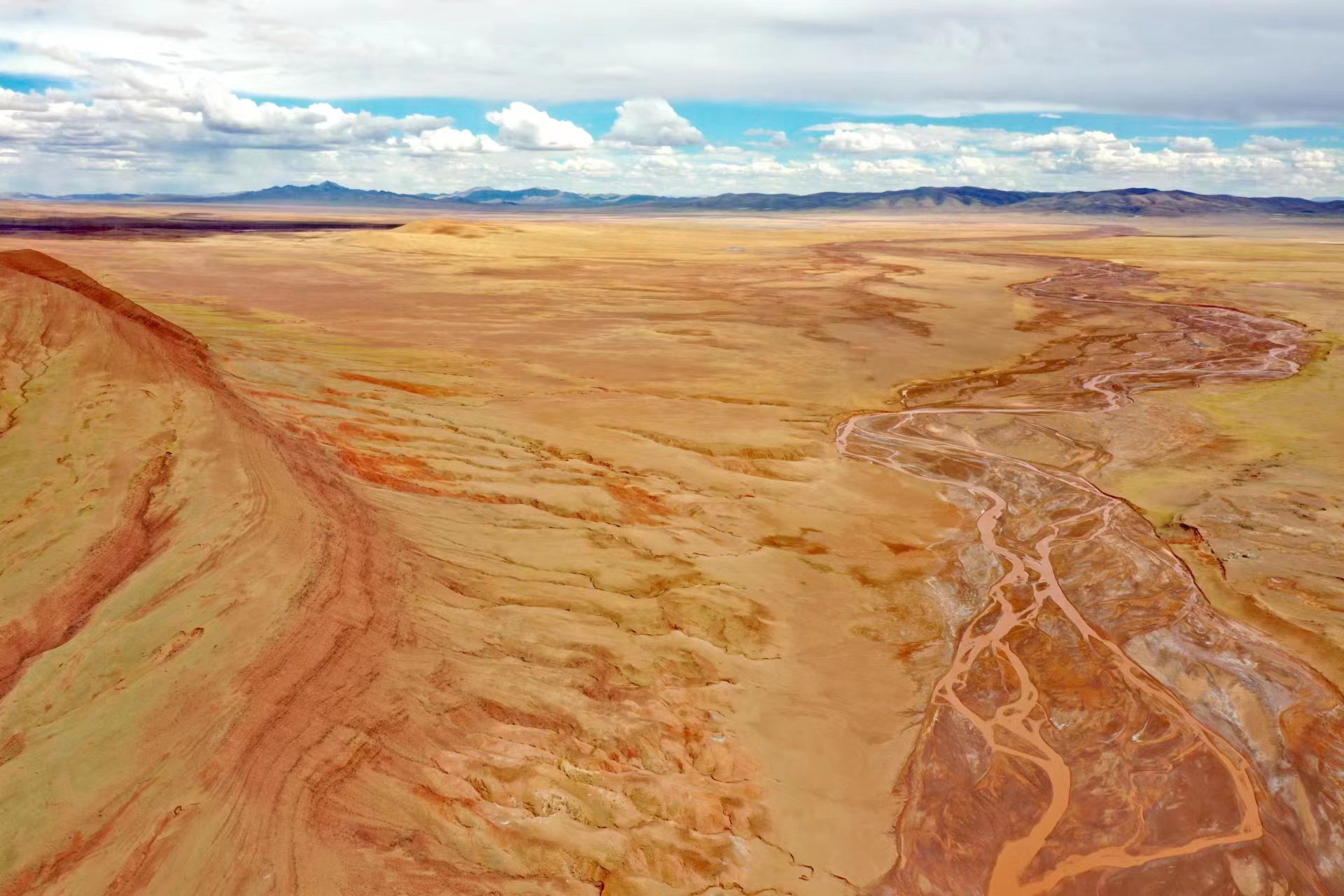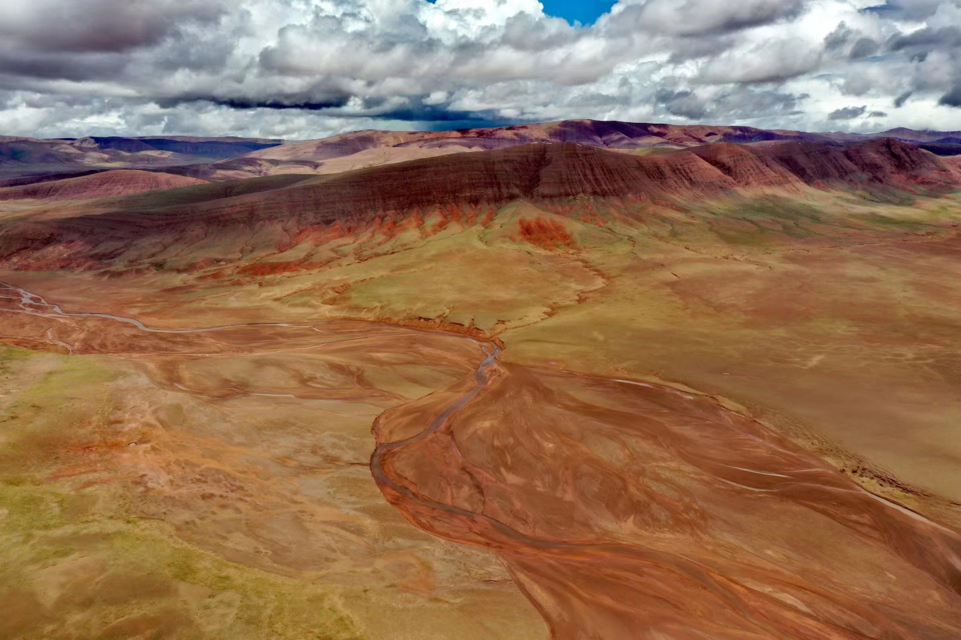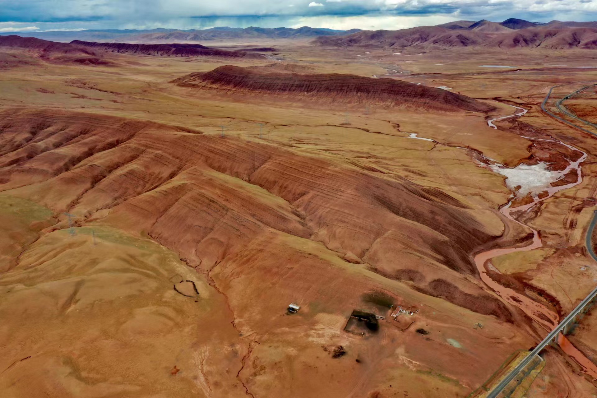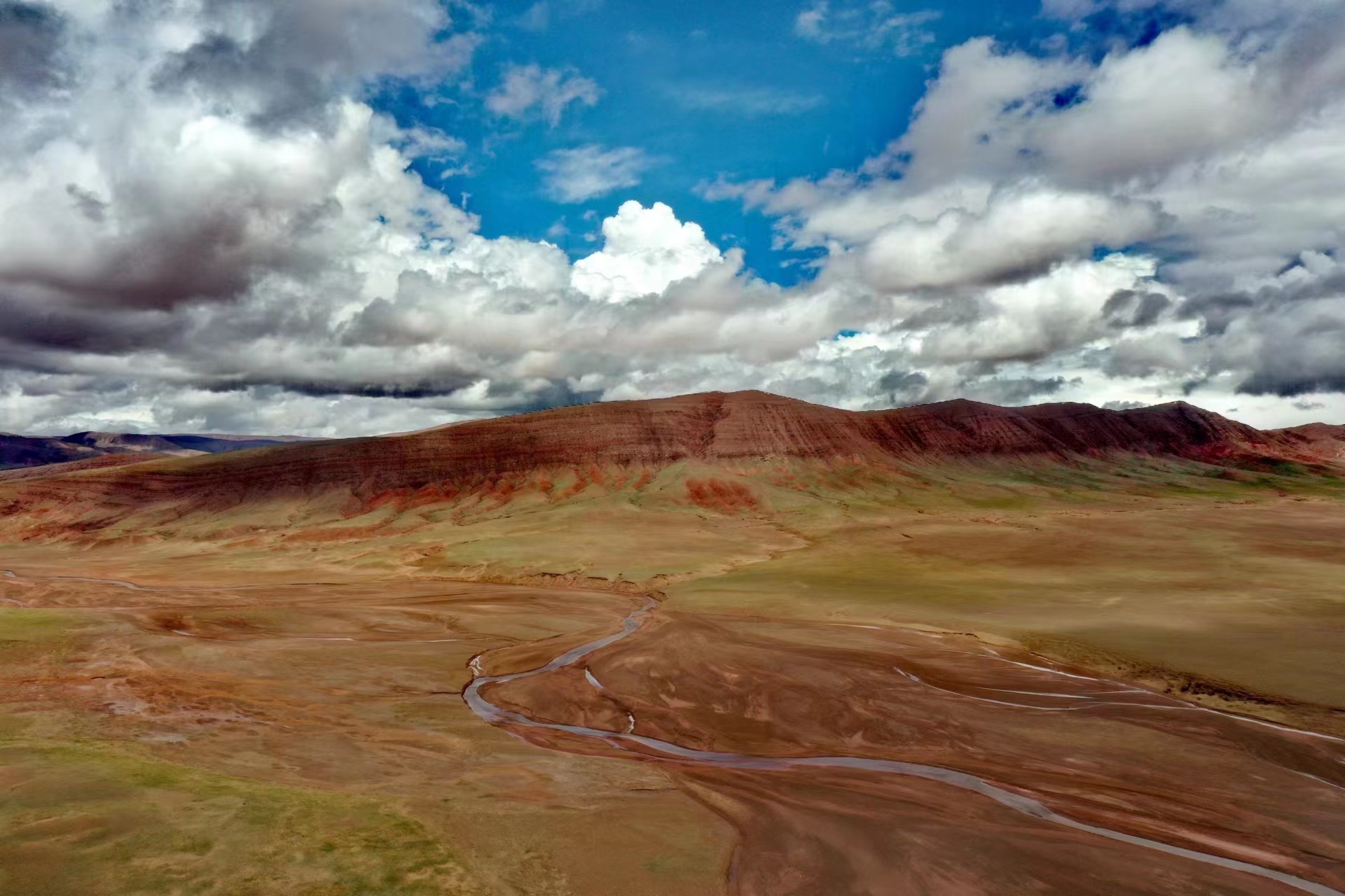 近日,中國地質(zhì)大學(xué)(武漢)長江科考先遣隊員張永一行進行綜合科學(xué)考察時,在青藏公路日阿尺曲一帶發(fā)現(xiàn)一條紅色山脈,是青藏高原109國道沿線一處壯觀的地質(zhì)遺跡。該山脈由晚白堊紀(jì)鈣質(zhì)膠結(jié)的粉、細(xì)砂巖與古近紀(jì)紫紅色、磚紅色復(fù)成份礫巖所組成,呈近東西走向,兩坡不對稱,南陡北緩,地層剖面出露清楚。