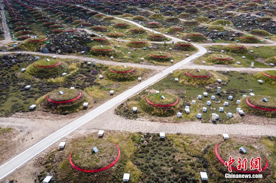 6月28日,四川稻城,稻城高海拔宇宙線觀測站均勻分布的探測器。海拔4410米的四川省甘孜州稻城縣海子山,5216個電磁粒子探測器和1188個繆子探測器,以及占地78000平方米的水切倫科夫探測器有序分布在1.36平方公里范圍,十分壯觀,這是中國建設的第三代高山宇宙線實驗站。 中新社記者 劉忠俊 攝