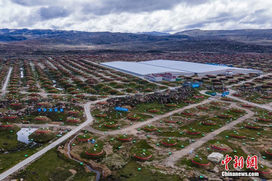 6月28日,四川稻城,觀測站中間房屋結構為水切倫科夫探測器。海拔4410米的四川省甘孜州稻城縣海子山,5216個電磁粒子探測器和1188個繆子探測器,以及占地78000平方米的水切倫科夫探測器有序分布在1.36平方公里范圍,十分壯觀,這是中國建設的第三代高山宇宙線實驗站。中新社記者 劉忠俊