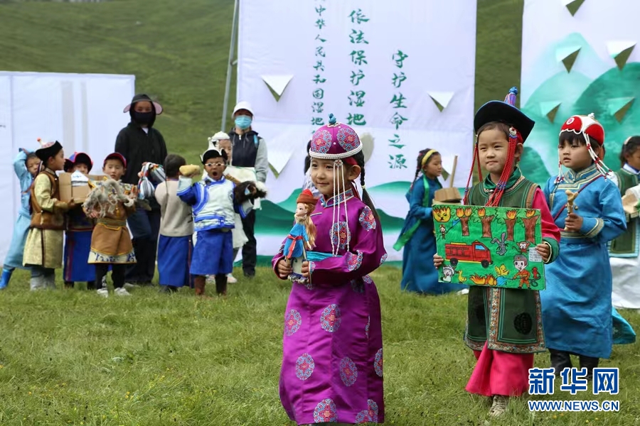 自2019年起,青海洮河源國家濕地公園每年夏季都會組織周邊幼兒園及中小學(xué)生開展科普教育活動,向?qū)W生們講授濕地基礎(chǔ)知識、了解植物和野生動物知識等,在體驗(yàn)自然奧秘和美麗的同時,培養(yǎng)學(xué)生愛護(hù)環(huán)境、保護(hù)生態(tài)的意識。正值盛夏,這里天空湛藍(lán)、水草豐美??破招虇T多杰康卓在給來自河南縣賽龍鄉(xiāng)中心寄宿制完全小學(xué)五年級的學(xué)生們上生態(tài)課。 “濕地被譽(yù)為‘地球之腎’,是生物多樣性富集的生態(tài)系統(tǒng)和人類重要的生存環(huán)境之一,具有涵養(yǎng)水源、凈化水質(zhì)、維護(hù)生物多樣性等重要的生態(tài)功能。”多杰康卓給大家講授濕地環(huán)保知識,也與學(xué)生們一同分享大家創(chuàng)作的環(huán)保主題作品。
