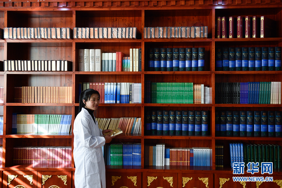 在果洛藏族自治州職業(yè)技術(shù)學(xué)校,2020級藏醫(yī)醫(yī)療與藏藥專業(yè)學(xué)生德吉在借閱書籍。(資料圖)新華社記者 張龍 攝