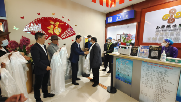 玉樹州委常委、副州長(zhǎng)、指揮部黨委書記、指揮袁浩宗,州委常委、組織部長(zhǎng)薛亞軍,州委組織部常務(wù)副部長(zhǎng)陳有軍,副部長(zhǎng)邴巴扎西,副部長(zhǎng)、指揮部黨委委員王家兵在機(jī)場(chǎng)大廳迎接,并第一時(shí)間為北京市第五批援青干部人才及送行團(tuán)成員獻(xiàn)上了飽含玉樹各族各界干部群眾深情厚誼的哈達(dá),與他們一一握手,向大家的到來表示熱烈的歡迎。