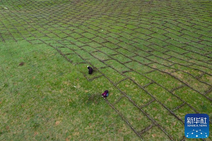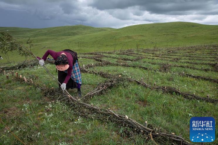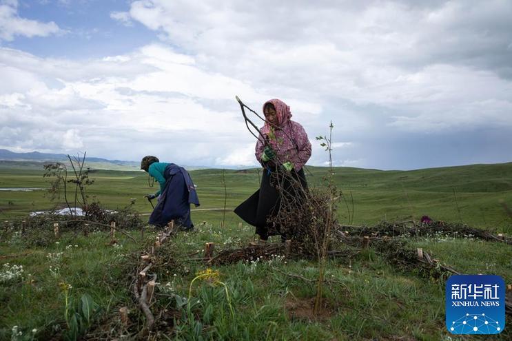 從五月底開始,四川省若爾蓋縣麥溪鄉(xiāng)黑河村村民在當?shù)卣M織下,抓住雨水季節(jié)的有利時機,在草場開展防沙治沙工作。