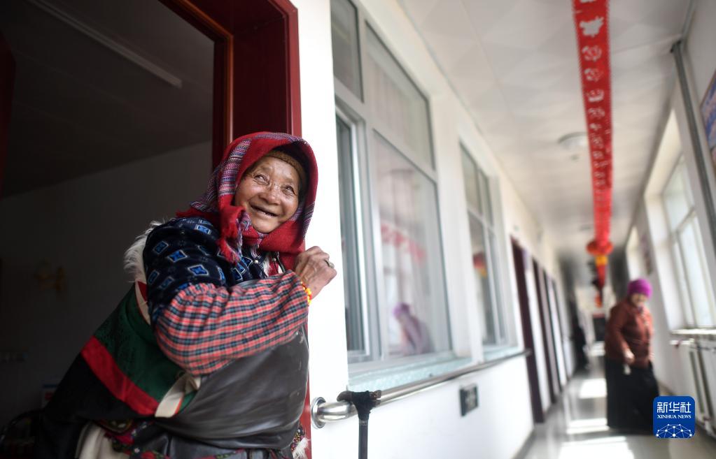 在青海省玉樹藏族自治州治多縣,提沙索忠老人在幸福敬老院內(nèi)(2021年3月14日攝)。新華社記者 張宏祥 攝