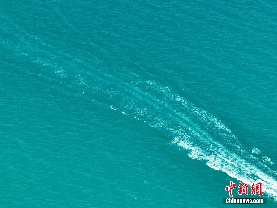 圖為航拍游輪在青海湖遨游。祁增蓓 攝