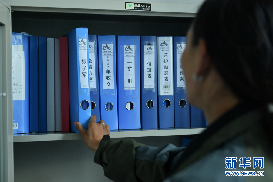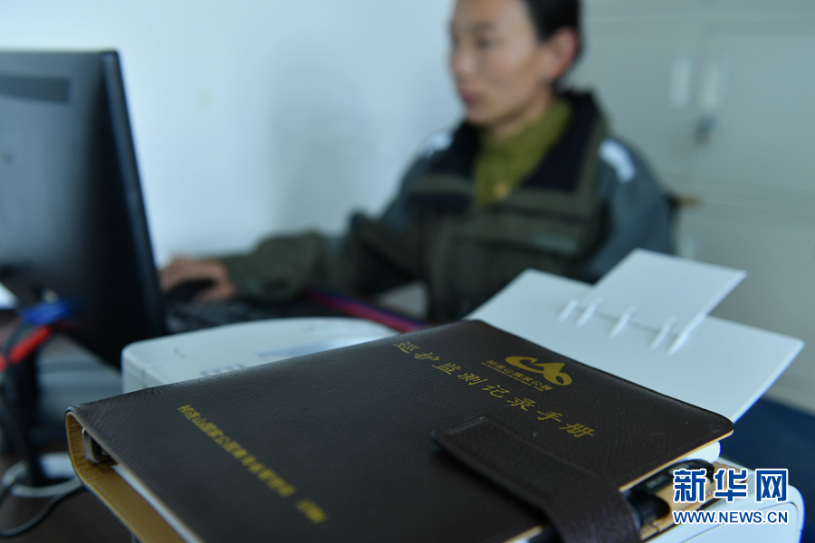 圖為代吉桑毛在管護站辦公室內工作。新華網(wǎng) 卡婭梅朵 攝