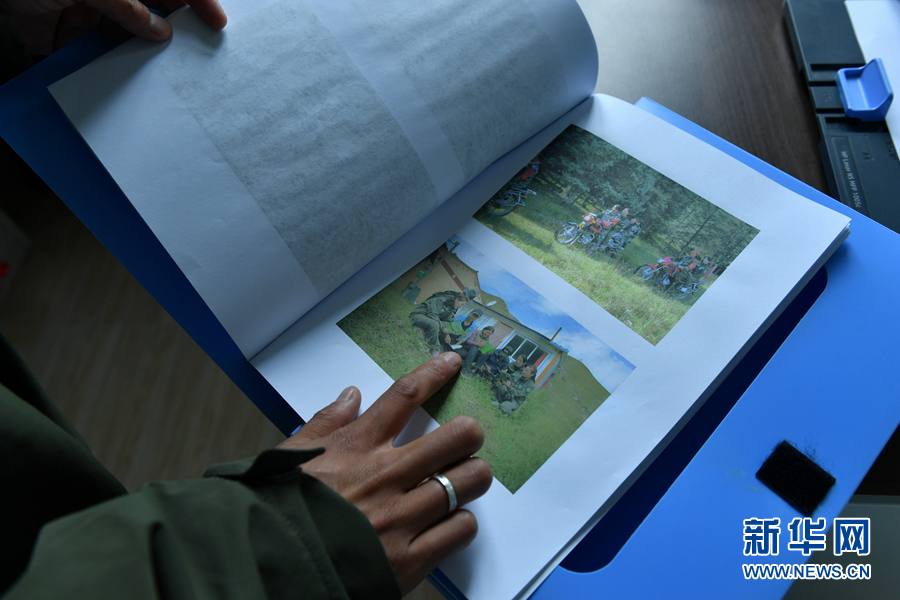 圖為代吉桑毛向記者展示冬季巡護中拍攝的工作照。新華網(wǎng) 卡婭梅朵 攝