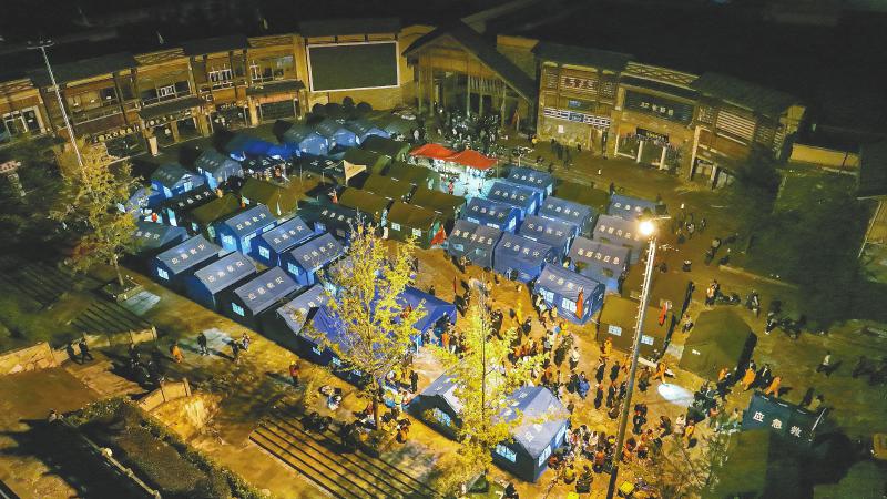5日傍晚,甘孜州瀘定縣磨西鎮(zhèn),臨時(shí)安置點(diǎn)的燈亮了;雅安市石棉縣新民鄉(xiāng),抗震救災(zāi)指揮部的燈也亮了。