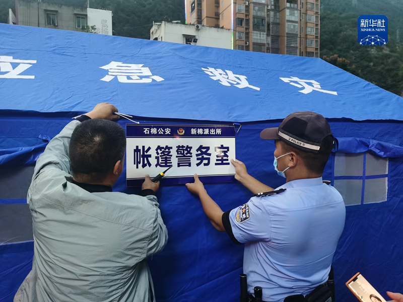 “快,這邊拉一下?!编l(xiāng)政府院內(nèi)的空地上,武警四川省總隊(duì)雅安支隊(duì)執(zhí)勤二大隊(duì)教導(dǎo)員鄭定架正在指揮戰(zhàn)士們?yōu)榕R時(shí)醫(yī)院增設(shè)帳篷。