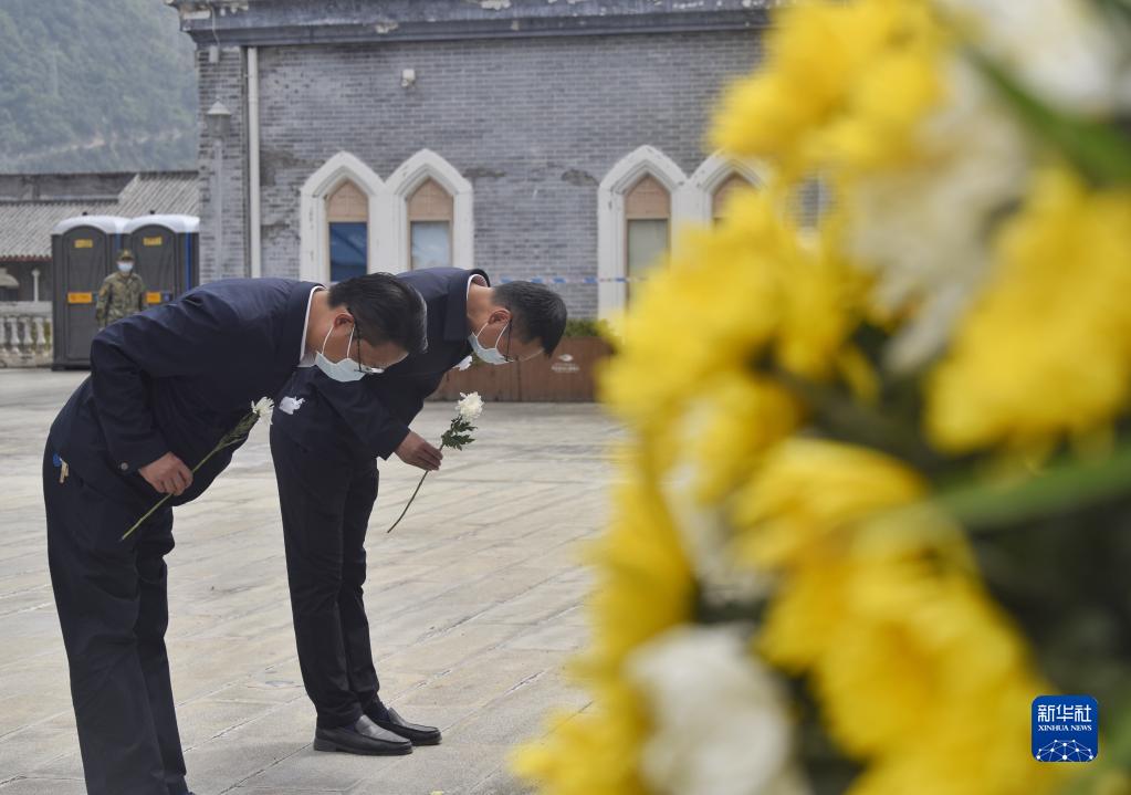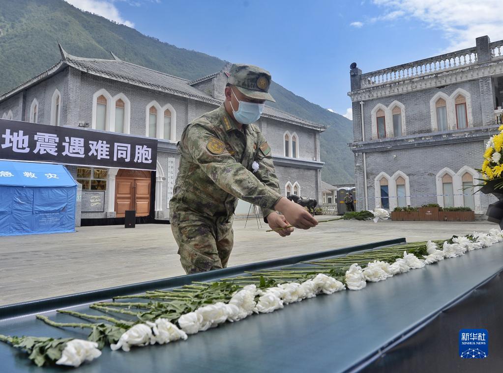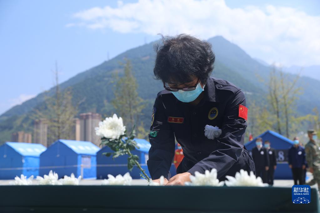 國務院抗震救災指揮部工作組成員,有關部隊負責同志,四川省委、省政府及省直有關部門負責人,在當?shù)貐⑴c搶險救援的解放軍和武警官兵代表、公安民警、消防和應急救援隊伍、醫(yī)護人員、志愿者代表,基層干部群眾等參加哀悼活動。