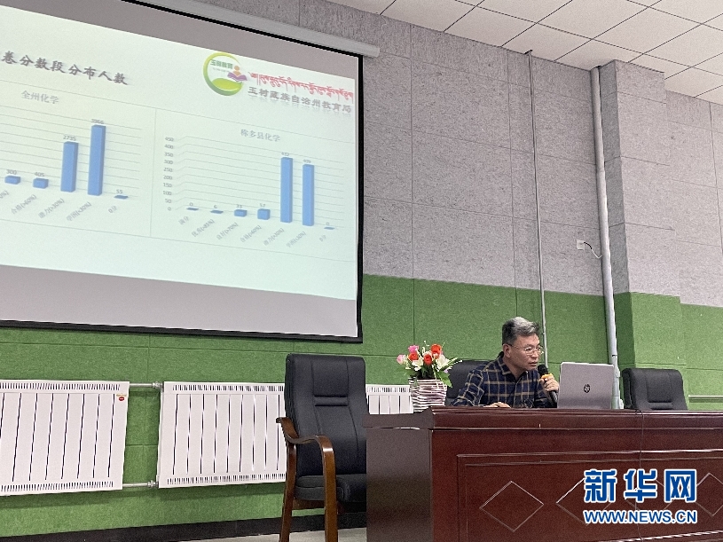 2021年10月15日,趙焱在玉樹州稱多縣教育調(diào)研途中,進行義務(wù)教育階段考試分析。(新華網(wǎng)發(fā) 受訪者供圖)