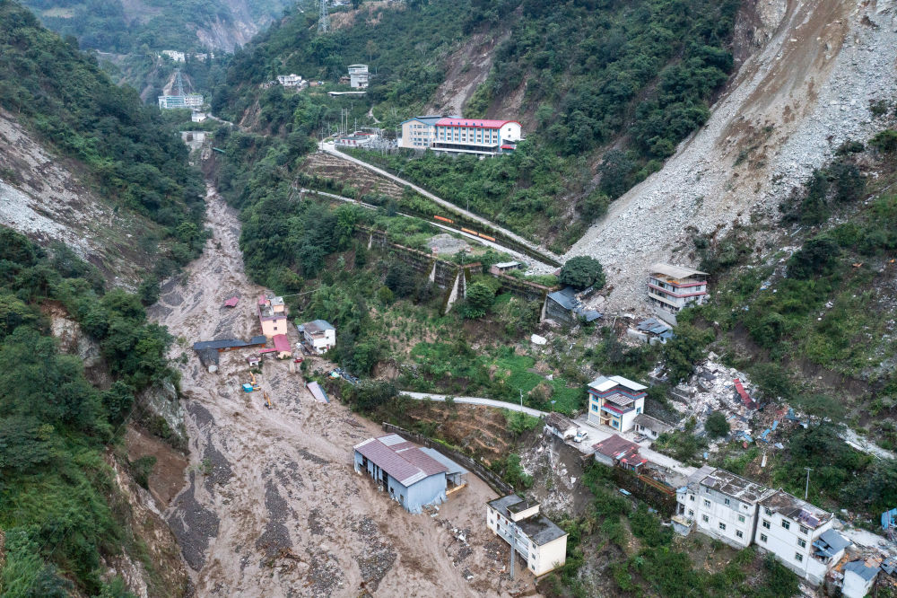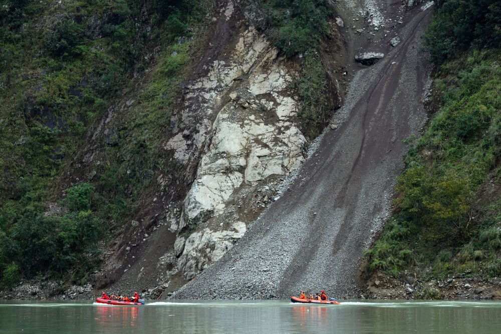 9月6日拍攝的得妥鎮(zhèn)附近的山谷,地震導(dǎo)致了山體垮塌。