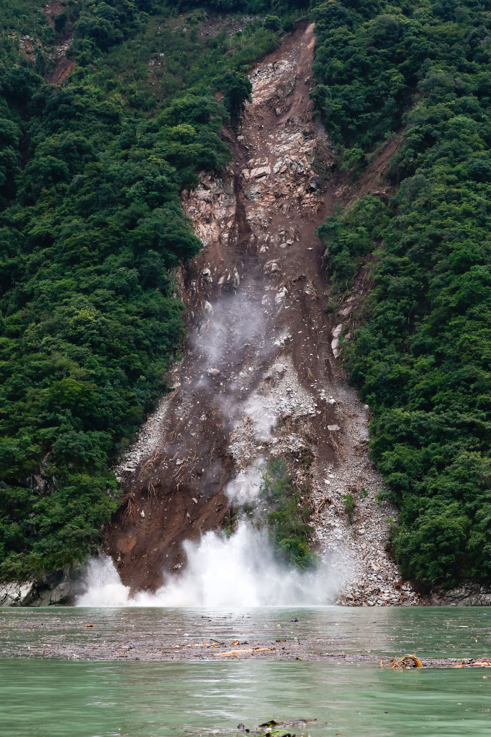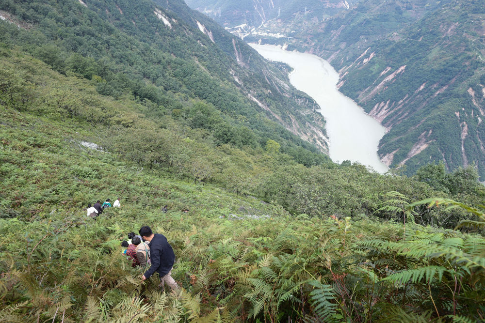 時間已經(jīng)到了下午3點半,我決定跟著十余個村民走下山,盡快下山整理照片發(fā)稿。下山路比上山路略好走一些,有時沿著尚未中斷的山間盤山公路行走,有時會經(jīng)過之前村民踩出的小路,有時只能自己開路向前。兩個來小時之后,坐在返回得妥鎮(zhèn)的橡皮艇上,我懸著的心才終于落下。