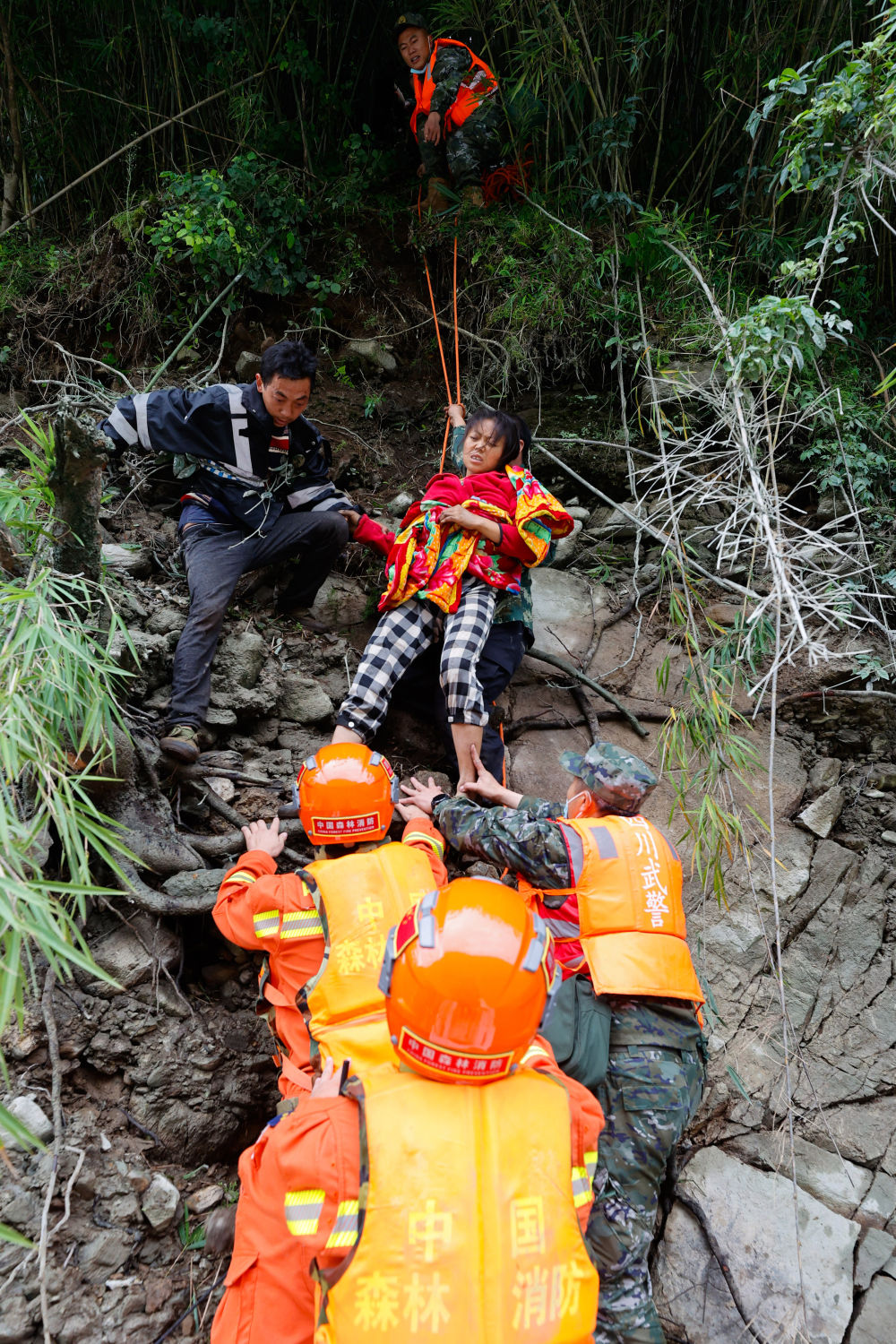 9月6日,救援人員攀爬高山,向灣東村挺進(jìn)。